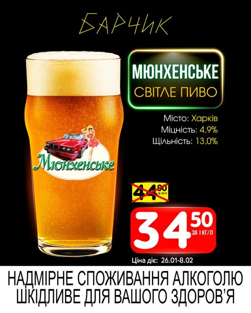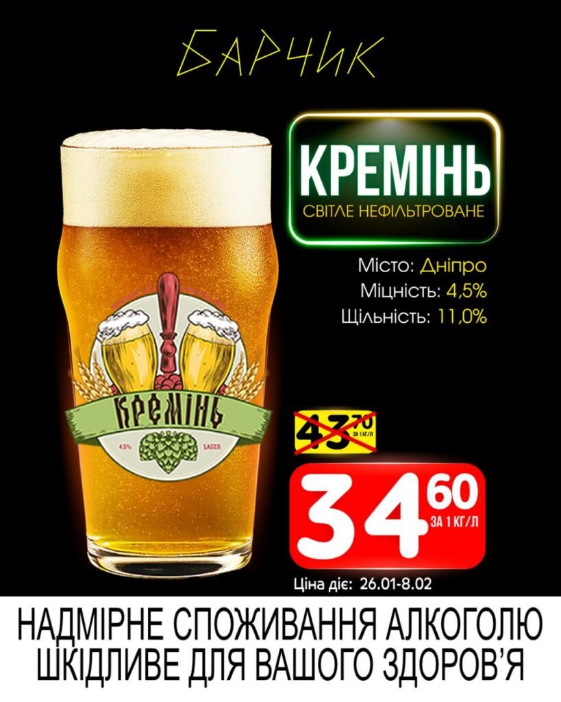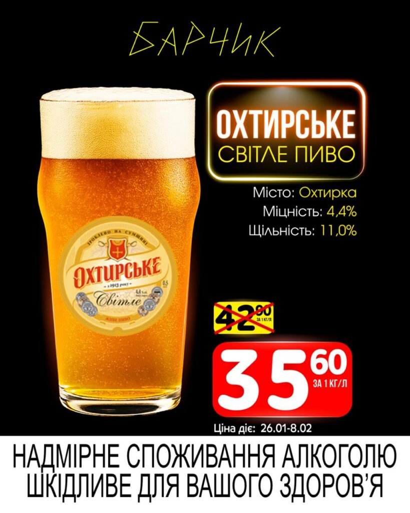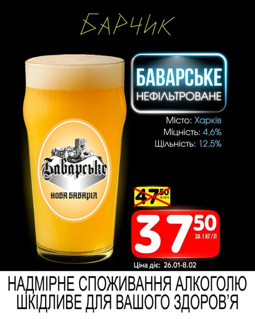 Барчик акції на Розливне пиво з 26 січня до 08 лютого 2026 року.