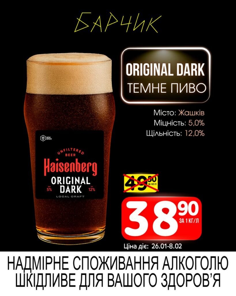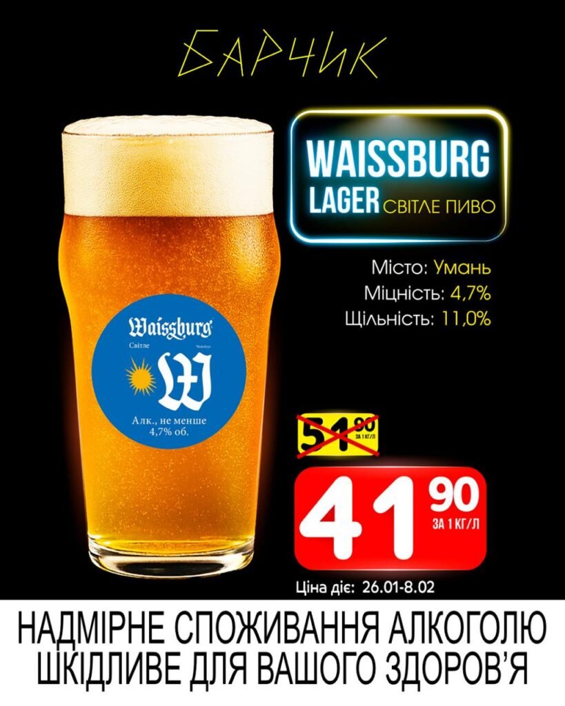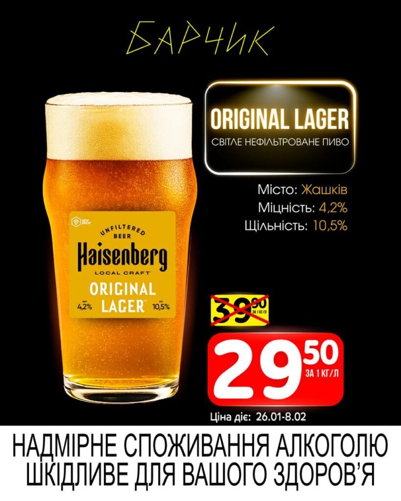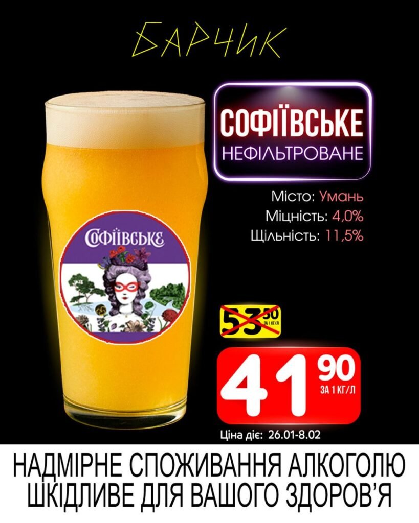 Барчик акції на Розливне пиво з 26 січня до 08 лютого 2026 року.