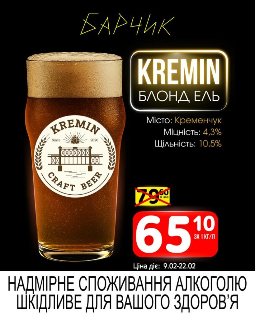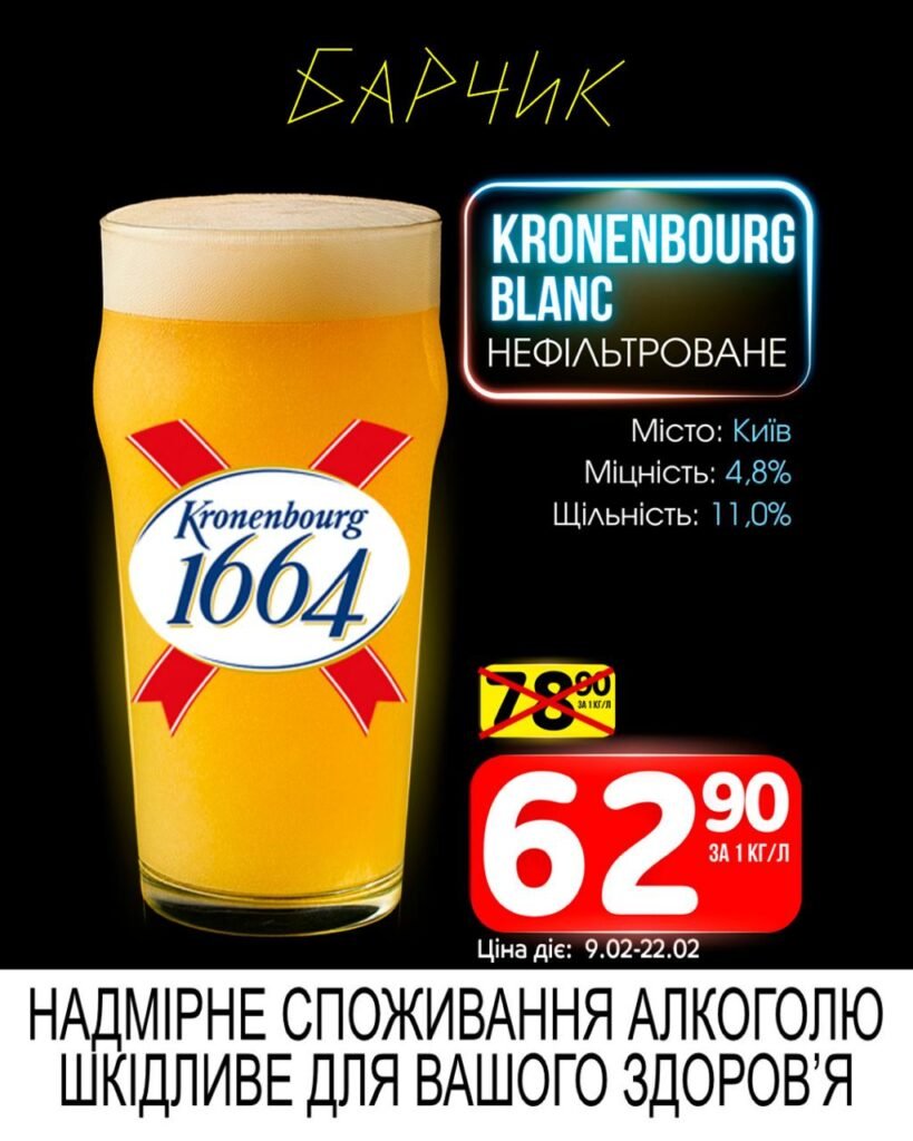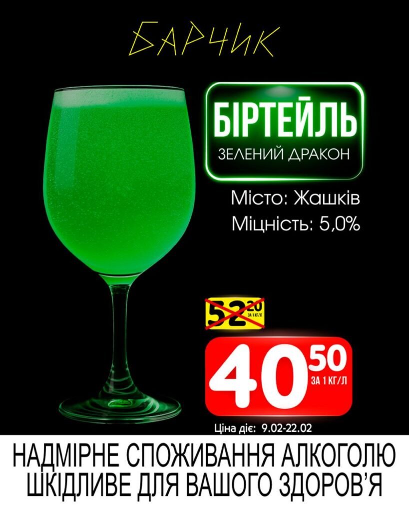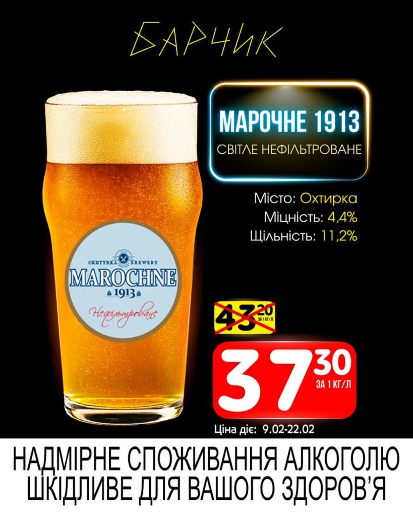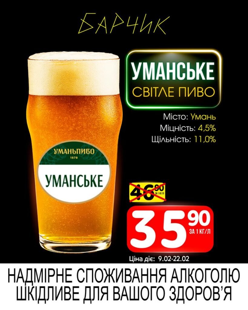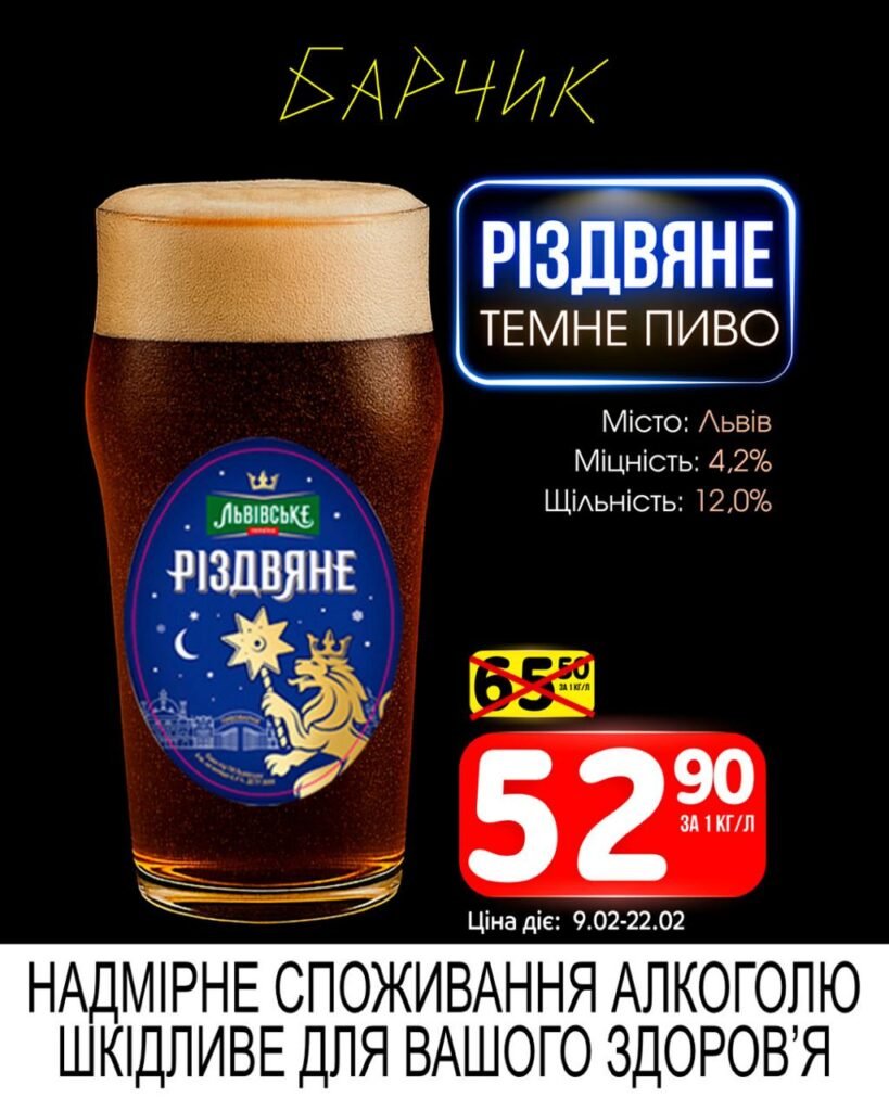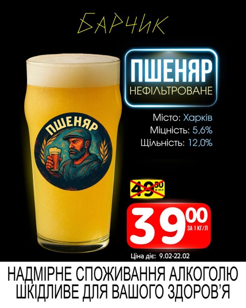 Барчик акції на Розливне пиво з 09 до 22 лютого 2026 року.