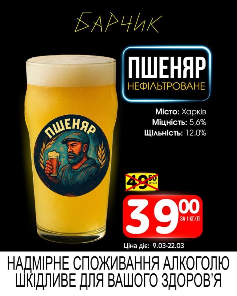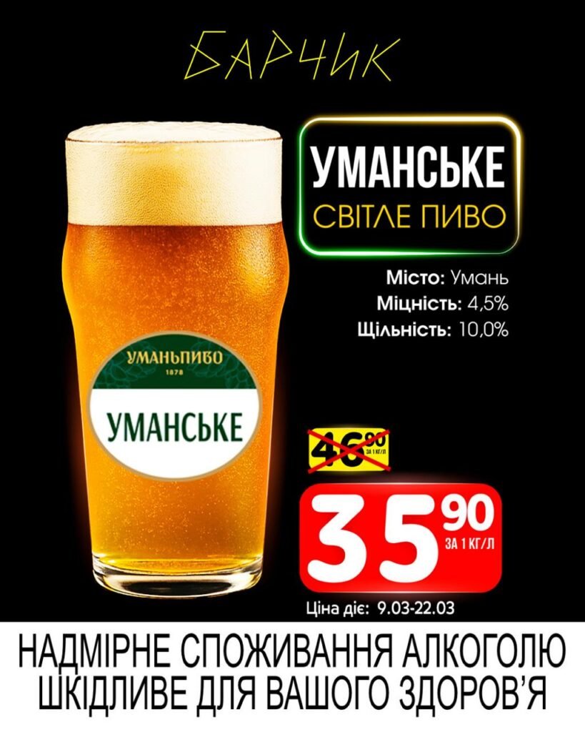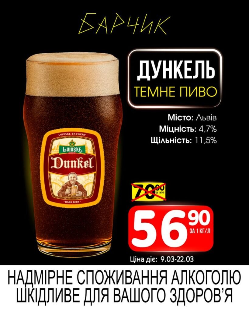 Барчик акції на Розливне пиво з 09 по 22 березня 2026 року.
