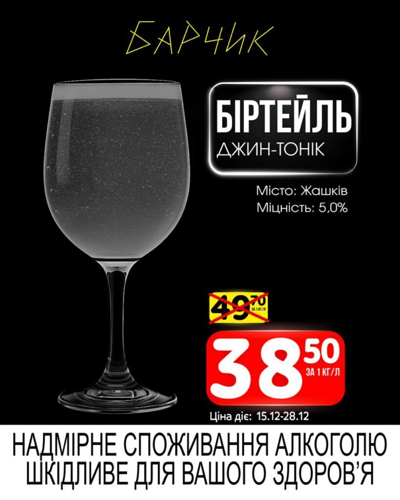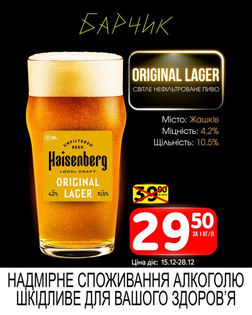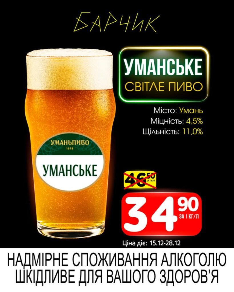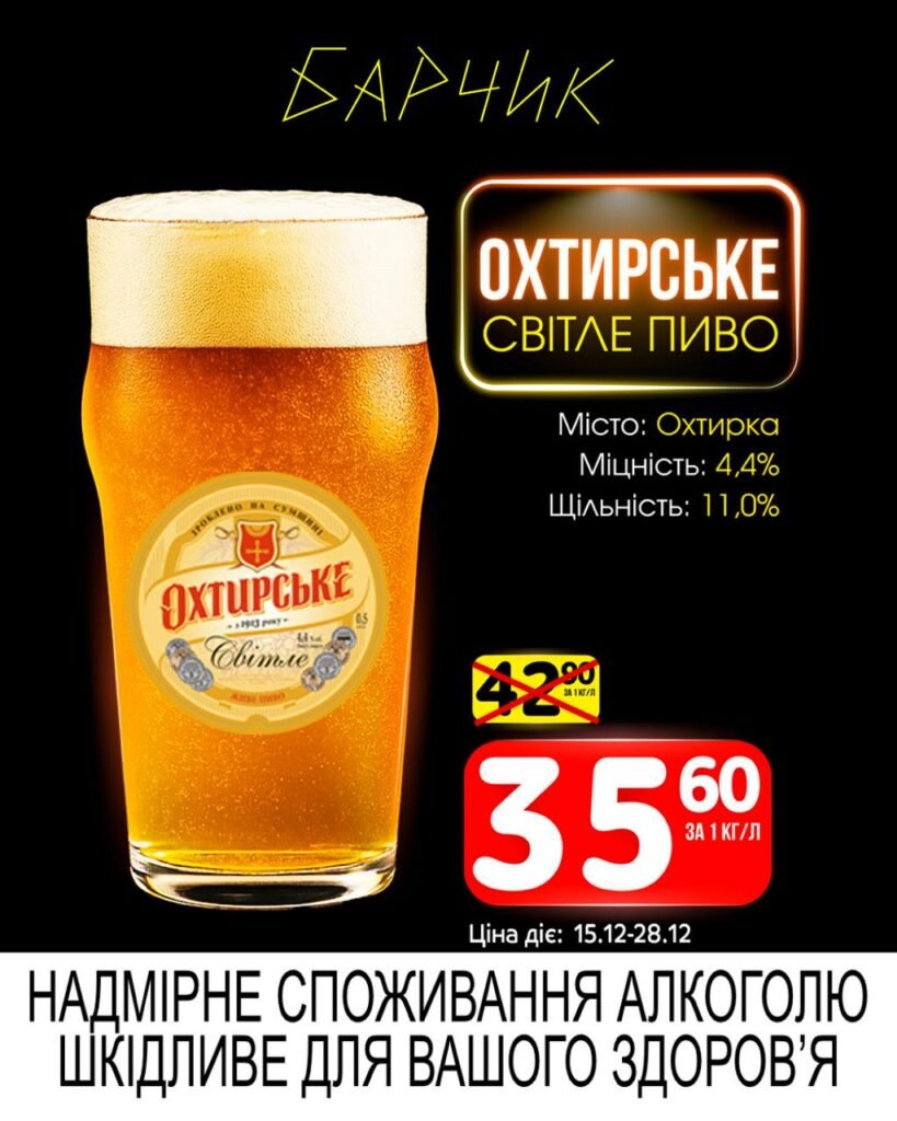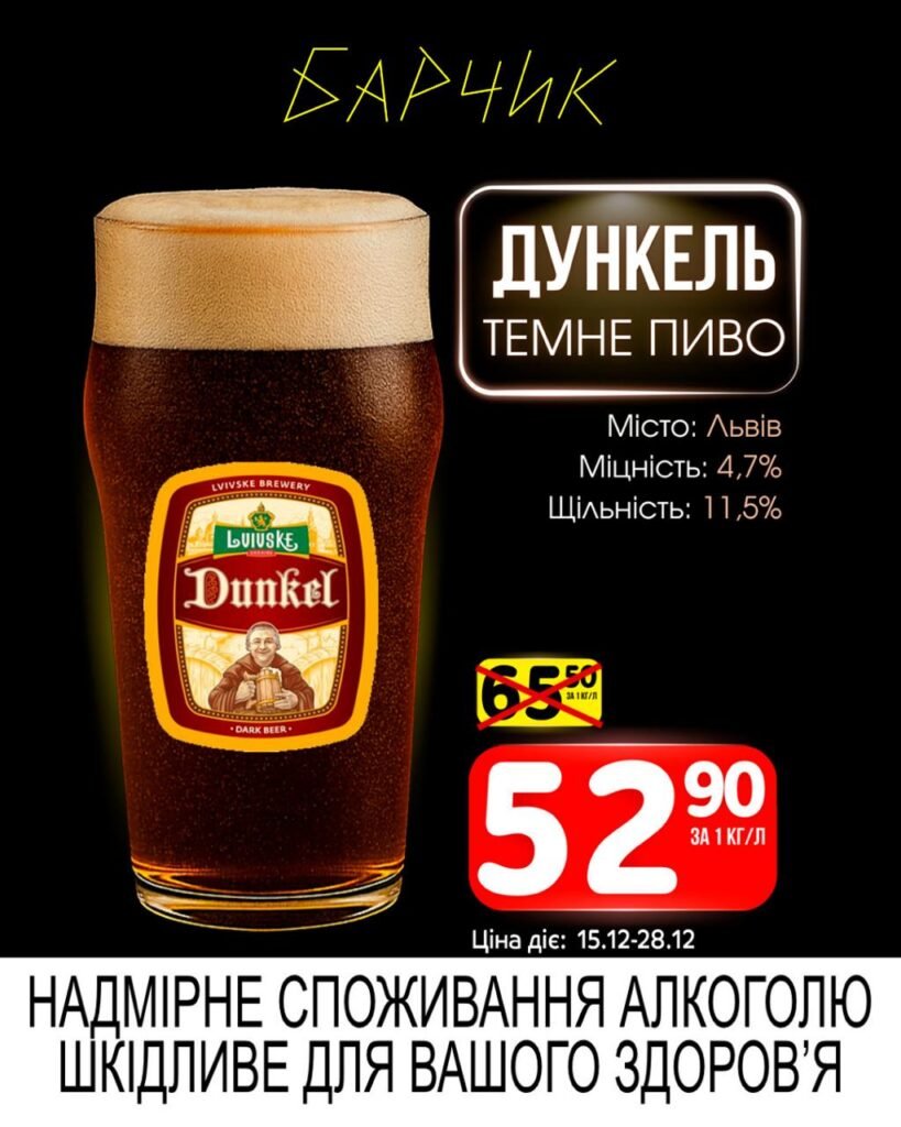 Барчик акції на Розливне пиво з 15 до 28 грудня 2025 року.